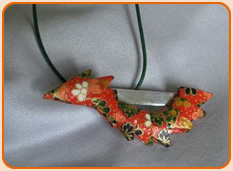 | Atualmente, Toshiko utiliza papel artesanal japonês nobre, o "washi" para compor com as peças em prata. |